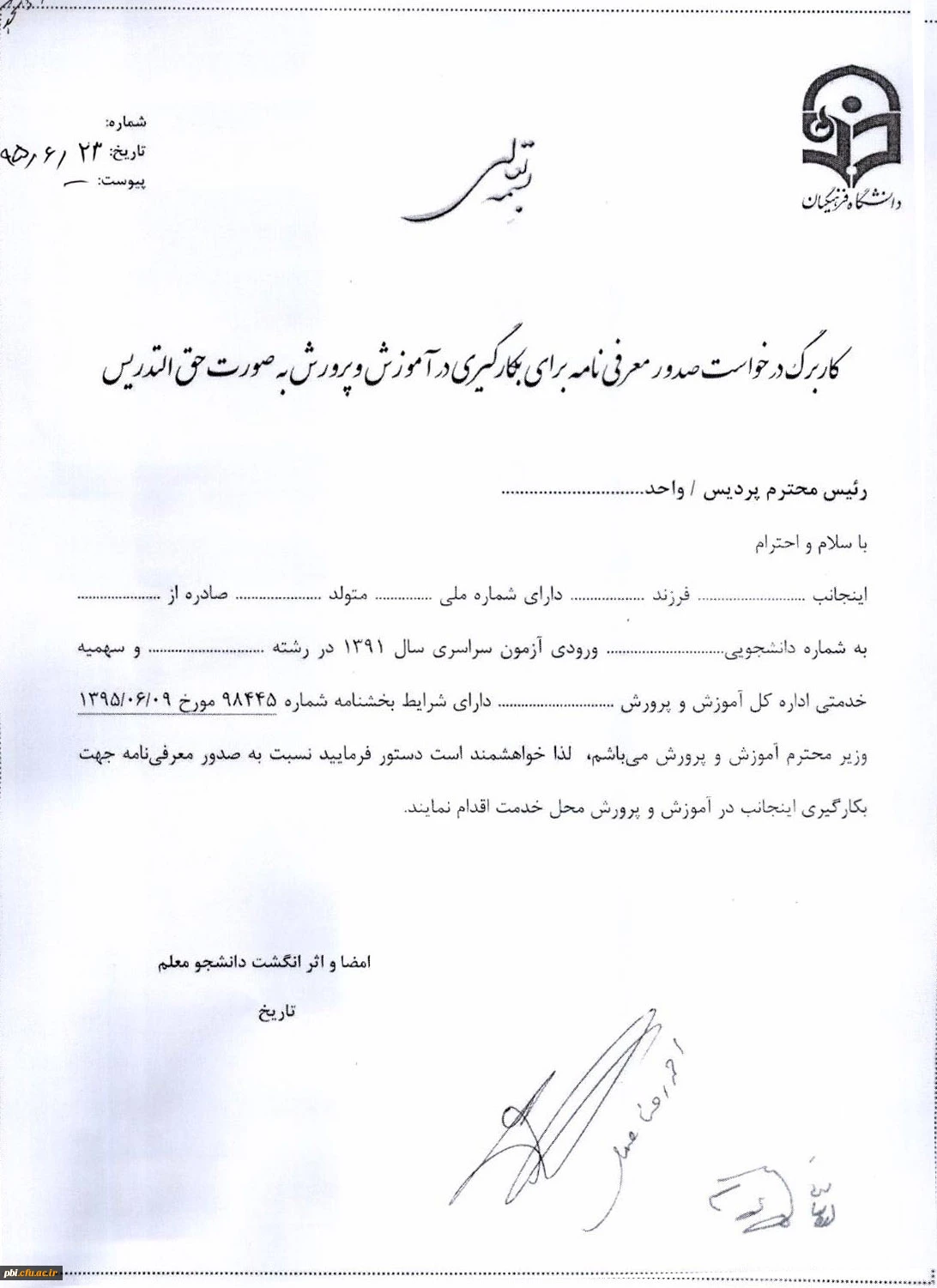 فرم ها و تطابق واحد مربوط به کلیه رشته ها