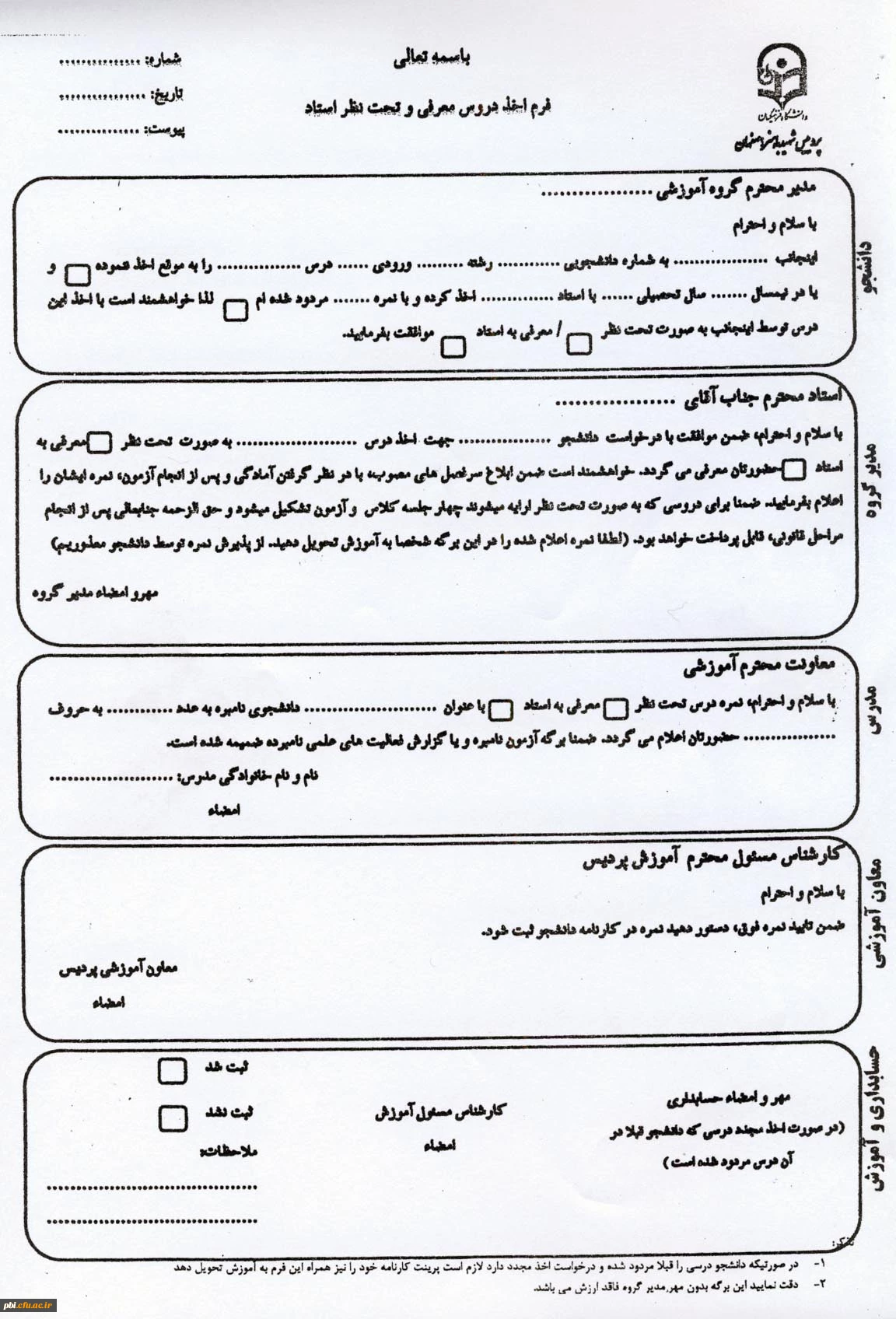 فرم اخذ دروس معرفی و تحت نظر استاد