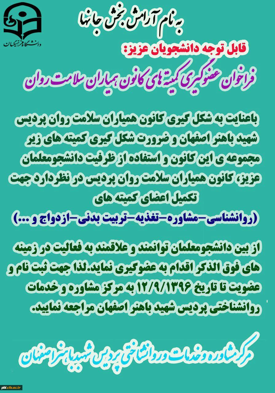 فراخوان عضو گیری کمیته ای کانون همیاران سلامت روان