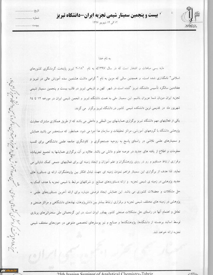 فراخوان هافراخوان بیست وپنجمین سمینارشیمی تجزیه