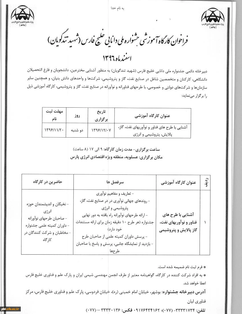 امتیاز دهید : فراخوان کارگاه آموزشی با طرح های فناور ونوآوری های نفت وگاز وپالای، پتروشیمی وانرژی سهشنبه 22 اسفند 1396 ساعت 15:13