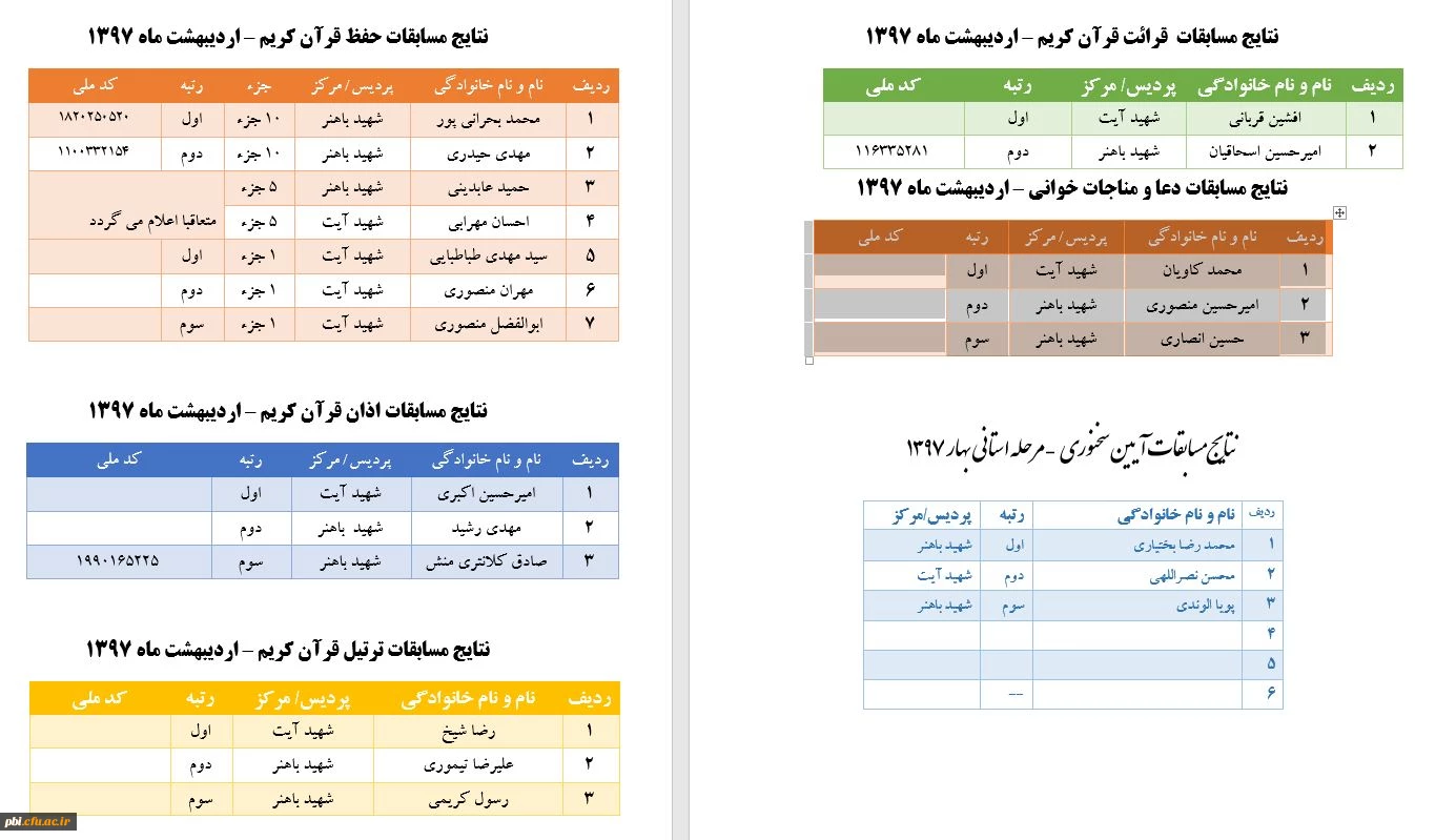 نتایج مسابقات حفظ قرآن کریم – اردیبهشت ماه 1397