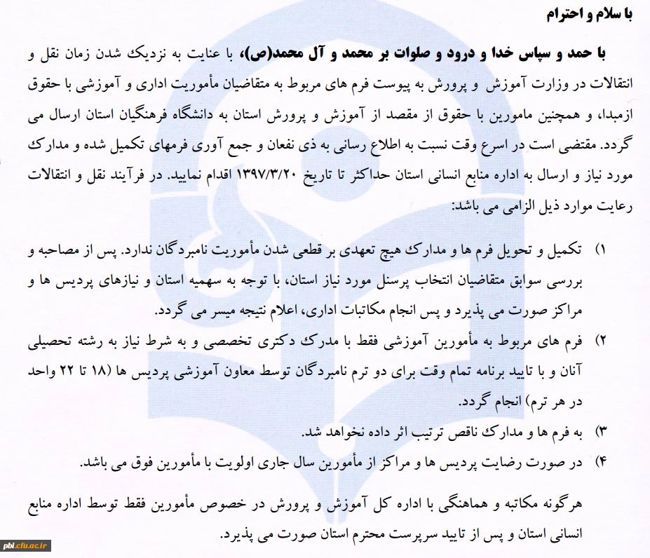 قابل توجه کارکنان و اساتید محترم آموزش و پرورش که تمایل دارند به دانشگاه فرهنگیان بصورت مامور منتقل شوند 4