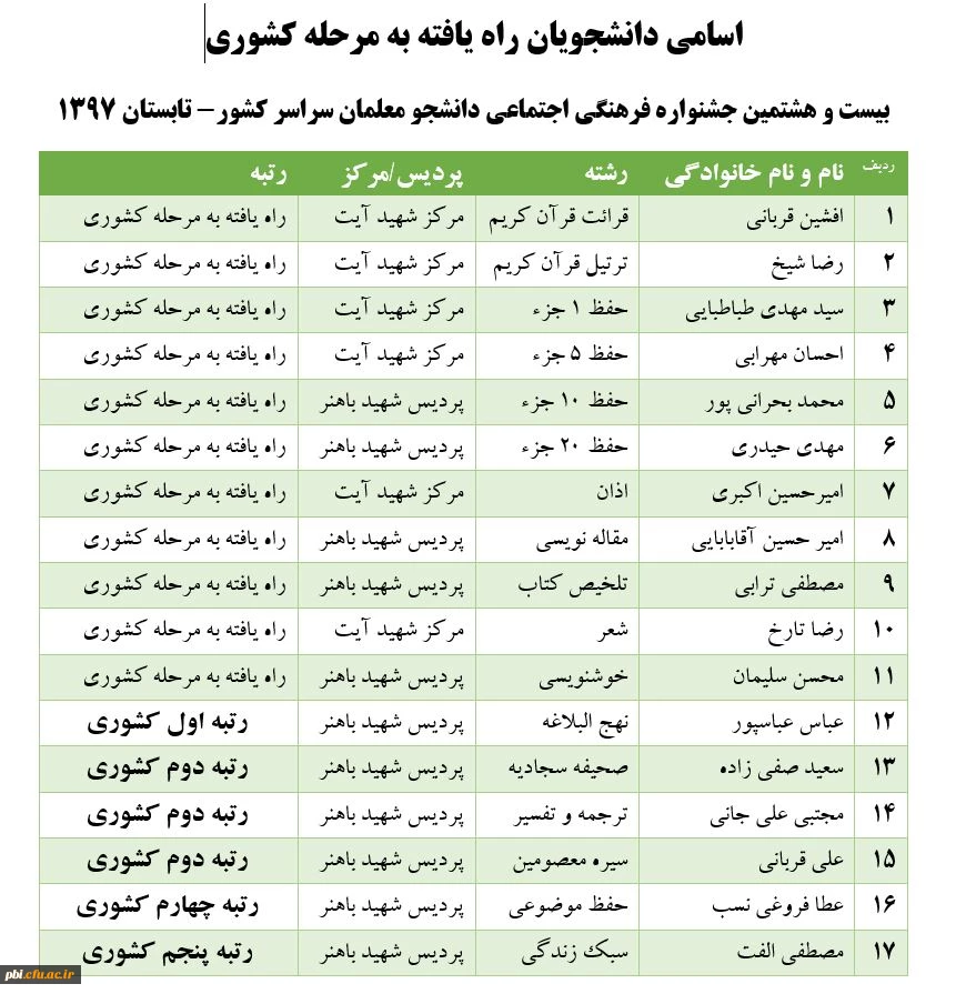 امتیاز دهید : نتایج بیست و هشتمین جشنواره فرهنگی اجتماعی دانشجو معلمان سراسر کشور- تابستان 1397 2 شنبه 6 مرداد 1397 ساعت 9:25
