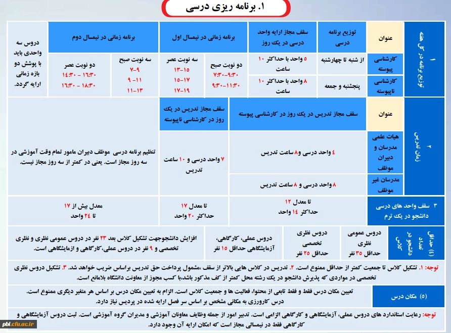 جدول حضور اعضای هیات علمی
