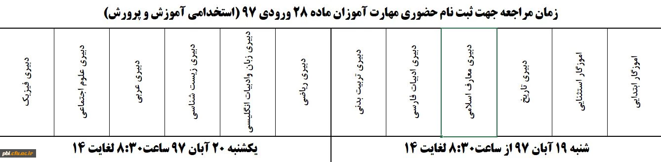 زمان بندی حضور جهت ثبت نام داوطلبان ماده 28 2