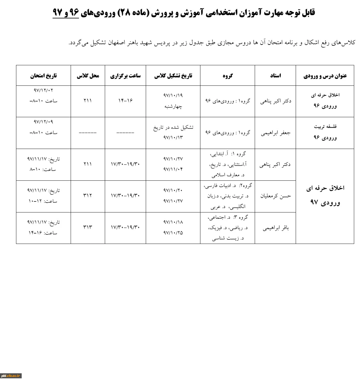 امتیاز دهید : تغییر زمان امتحان دروس مجازی ویژه مهارت آموزان ورودی 96 3 چهارشنبه 19 دی 1397 ساعت 14:45