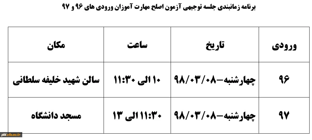 قابل توجه مهارت آموزان ماده 28: جلسه توجیهی آزمون اصلح و بخش فرهنگی دوره ی ورودی های 96 و 97 2