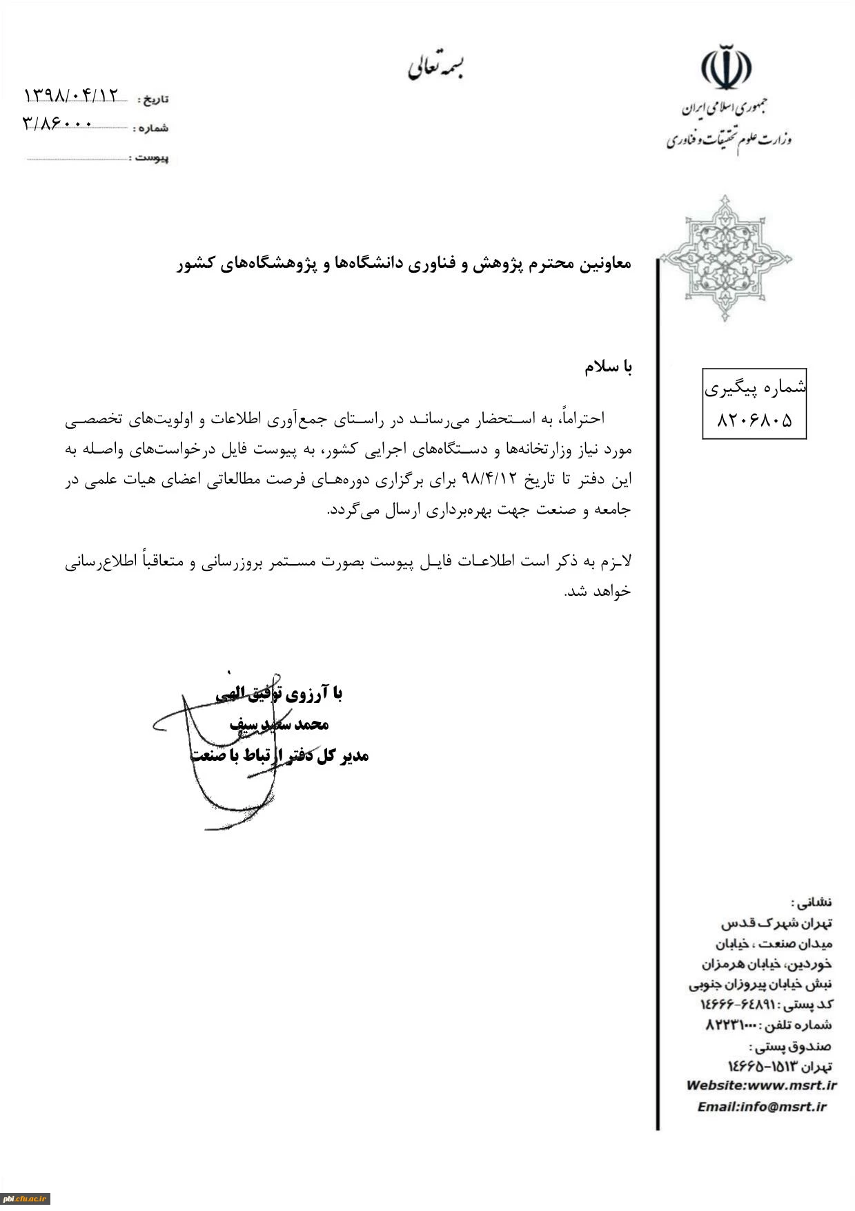 اطلاعیه ها ی مربوط به اساتید وکارکنان