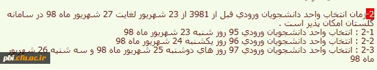 زمان بندی انتخاب واحد نیمسال اول سال 98 (3981) 2