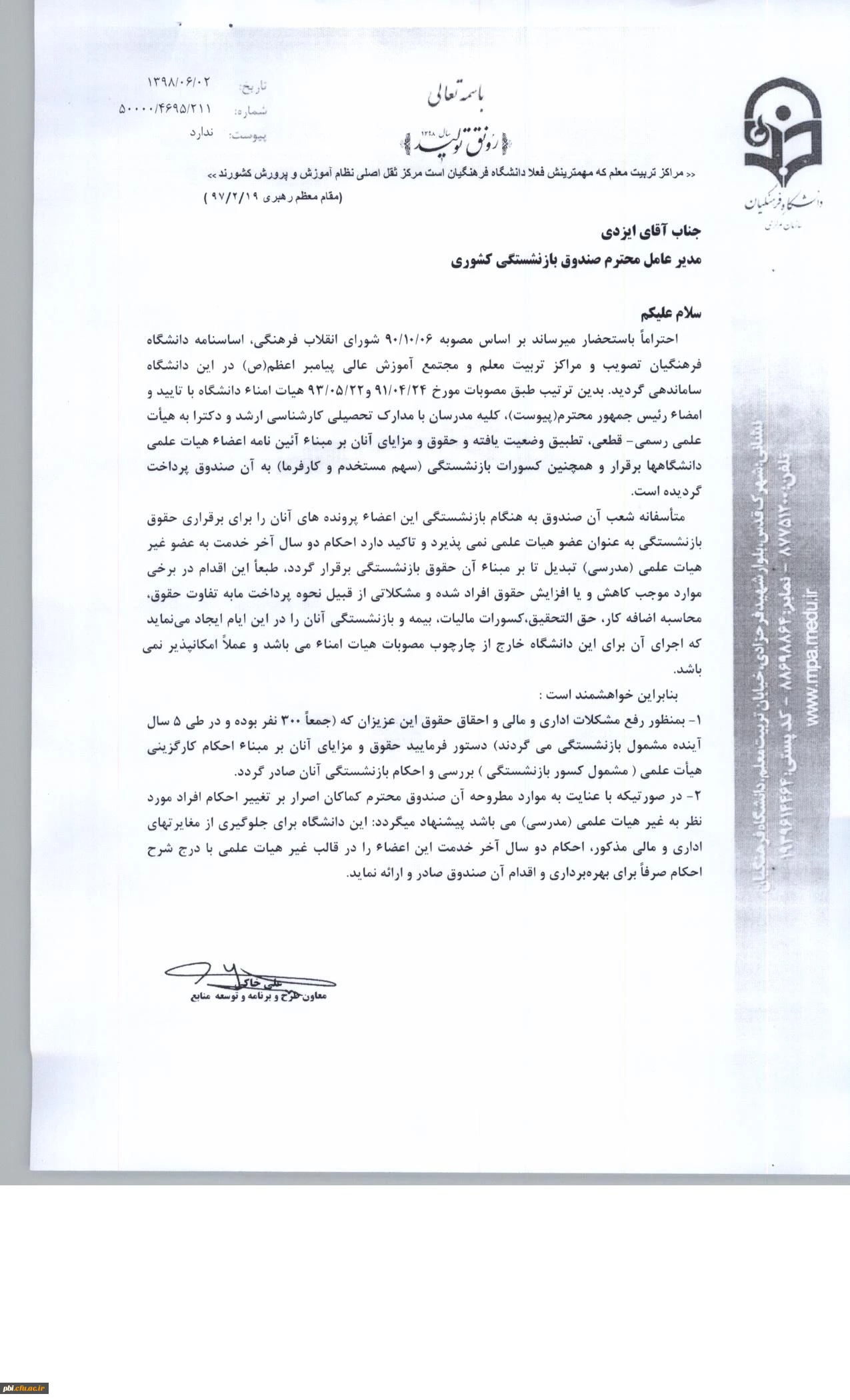 در خصوص بازنشستگی اعضای هیات علمی تطبیقی داخلی 2
