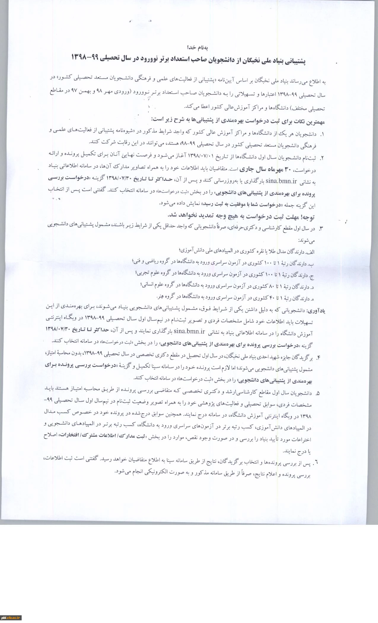 استفاده از امکانات و جوایز بنیاد ملی نخبگان 3