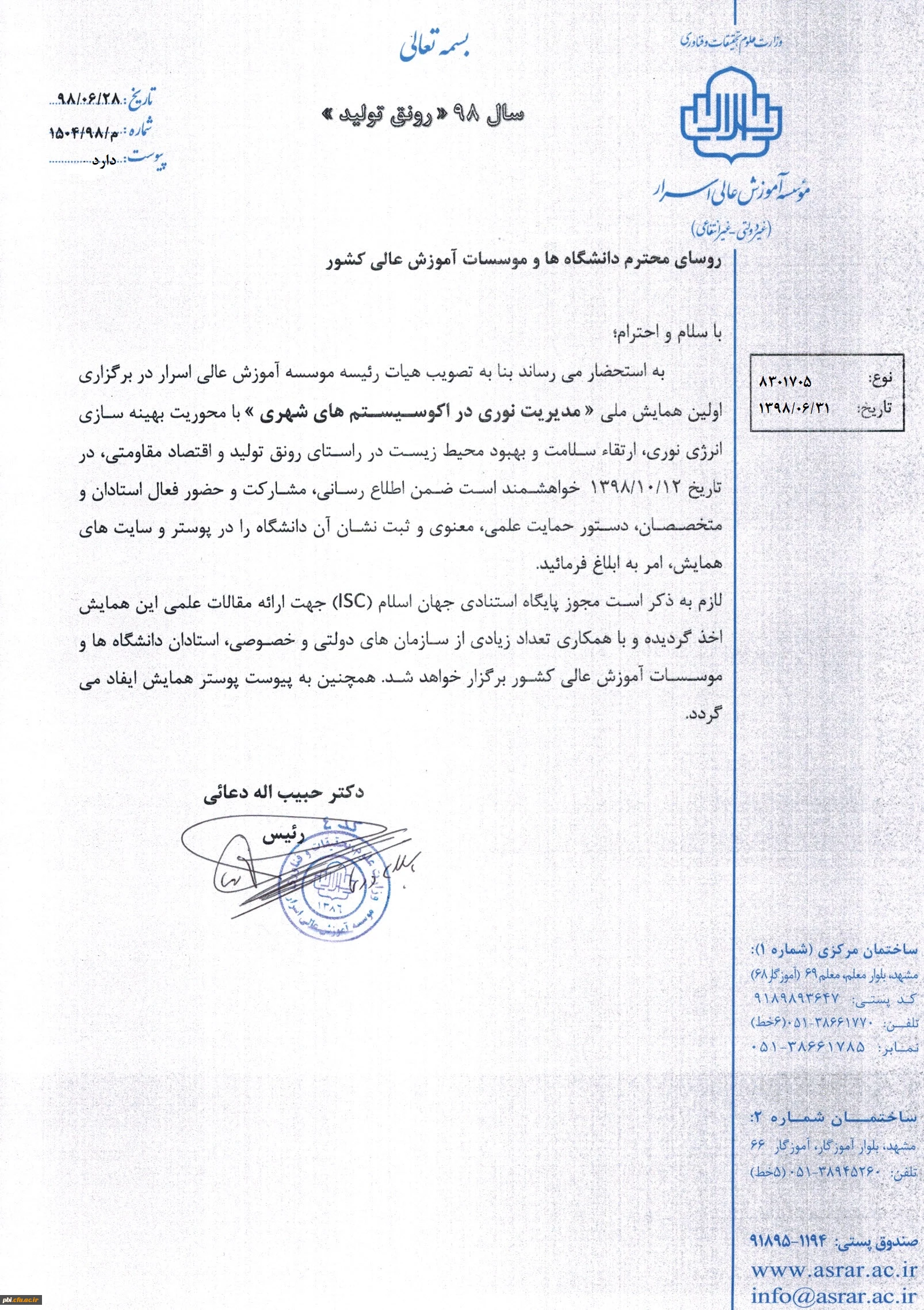 فراخوان شرکت در همایش مدیریت نوری اکو سیستم های شهری 3