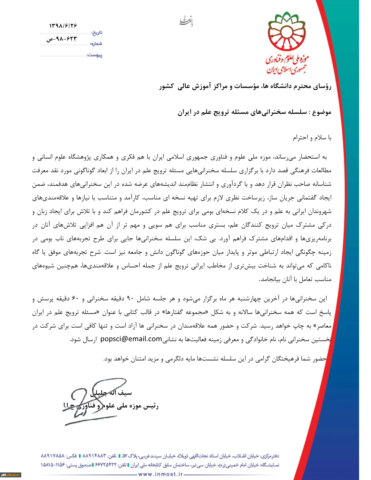 فراخوان سلسله سخنرانی های مسئله ترویج علم در ایران 2