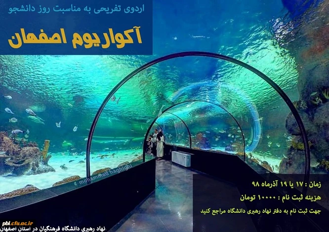 امتیاز دهید : برگزاری اردوی تفریحی پارک ناژوان و آکواریوم به مناسبت روز دانشجو 2 یکشنبه 17 آذر 1398 ساعت 9:56
