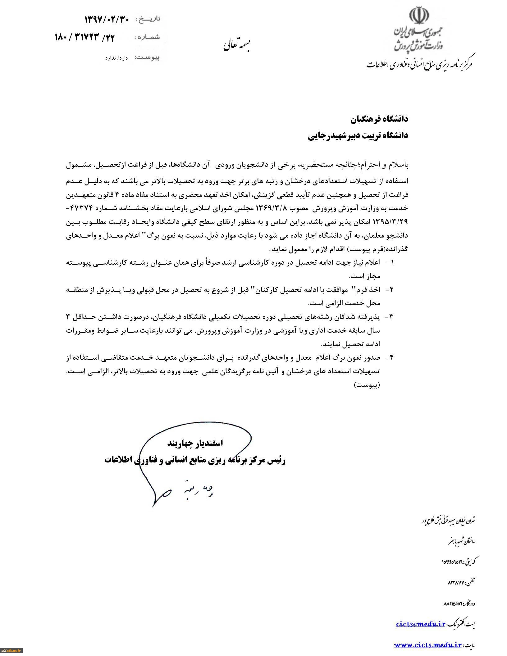 امتیاز دهید : آیین نامه پذیرش بدون آزمون نخبگان علمی در رشته های کارشناسی ارشد 4 شنبه 10 اسفند 1398 ساعت 13:34