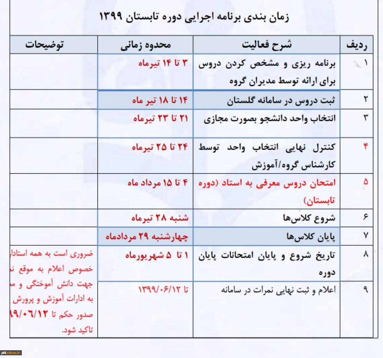 سرفصل و توزیع دروس کارشناسی پیوسته