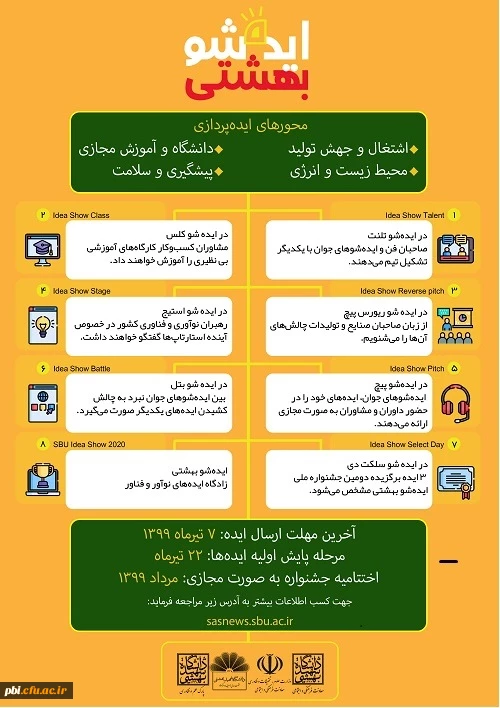 امتیاز دهید : دستورالعمل برگزاری جشنواره ملی نوآوری و فناوری ایده شو بهشتی 2 چهارشنبه 18 تیر 1399 ساعت 11:06