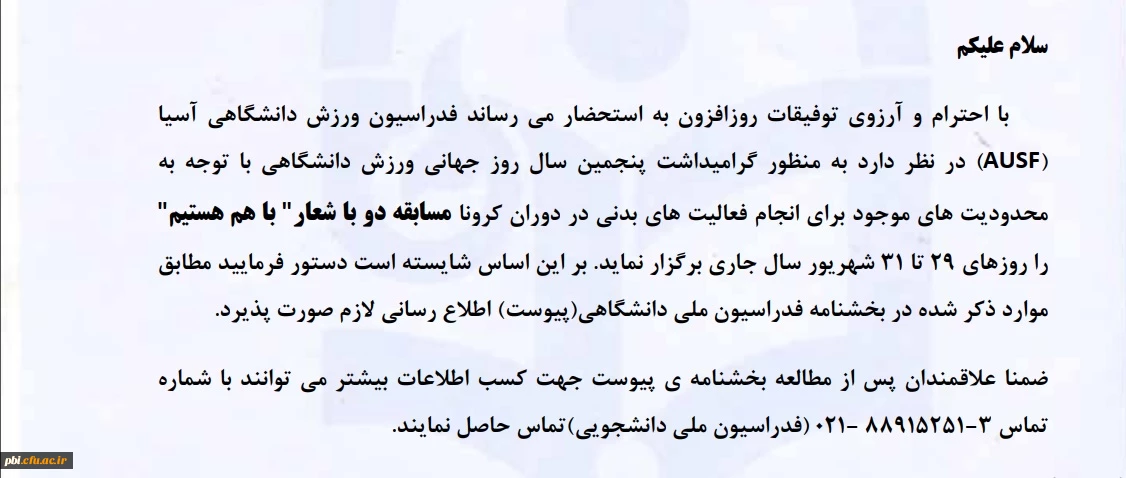 فراخوان برگزاری مسابقه دو با شعار ( با هم هستیم) 2