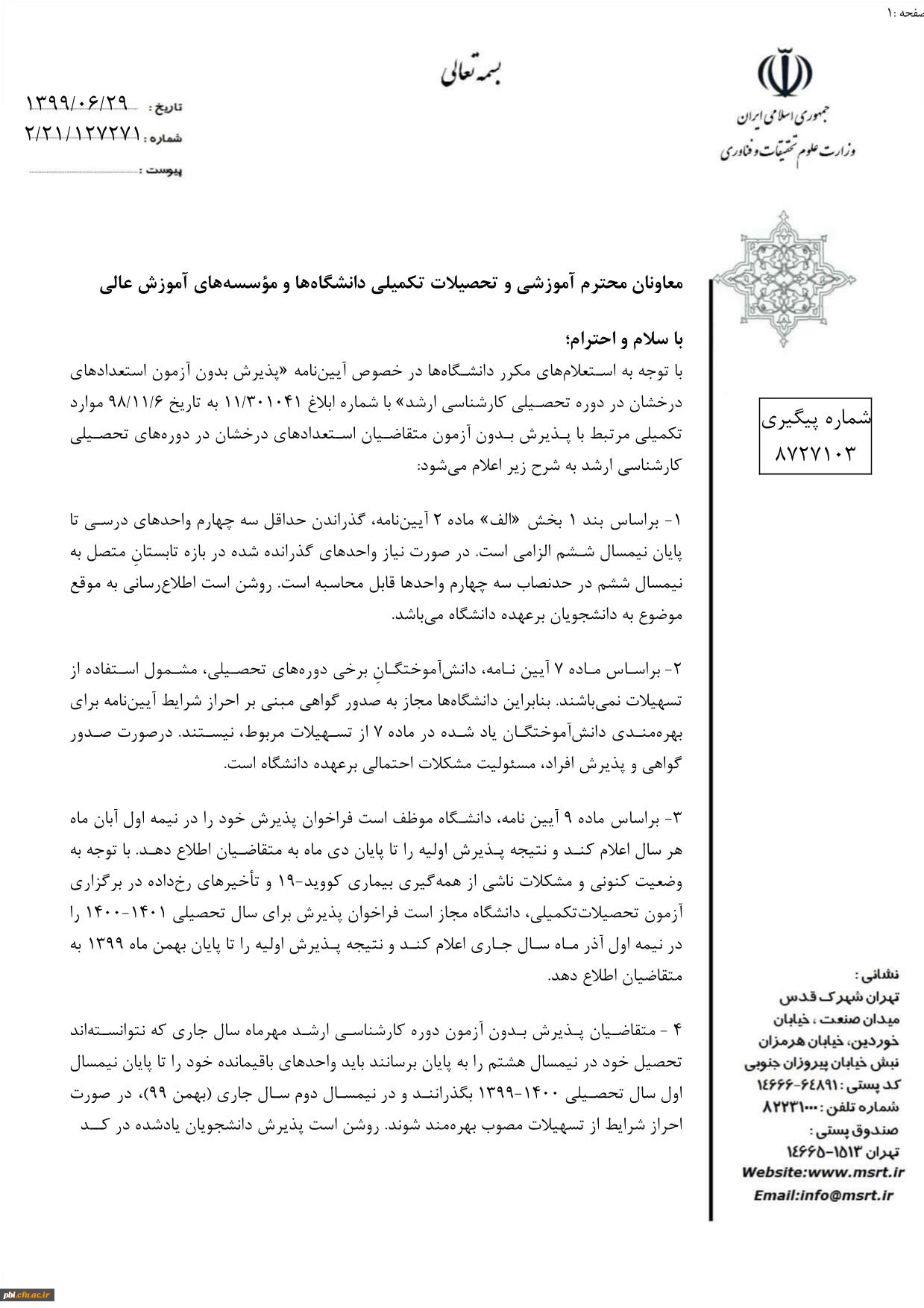 آیین نامه پذیرش استعداد درخشان در دوره کارشناسی ارشد 3
