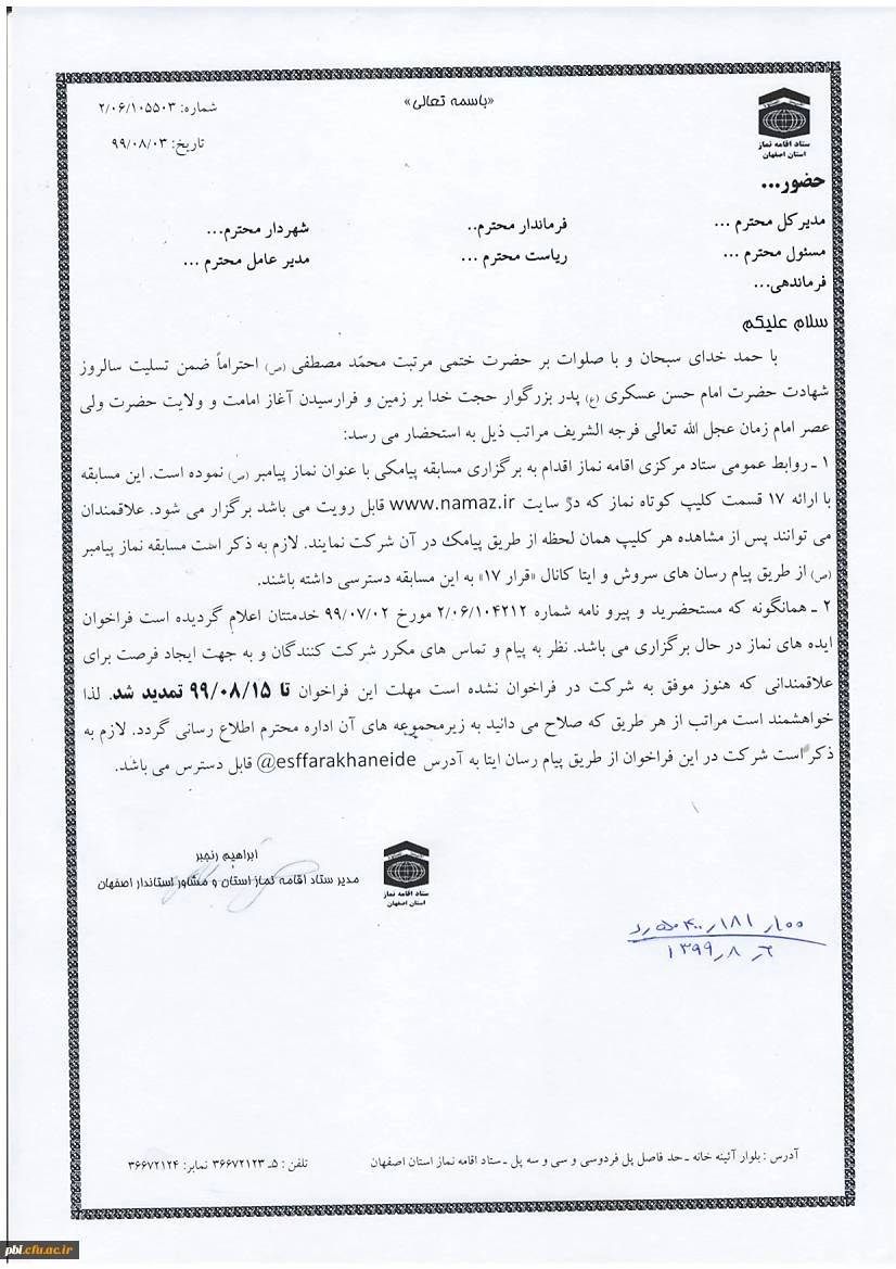 امتیاز دهید : ارسال فراخوان مهر واره ی بین المللی نقاشی اربعین و مسابقه نماز پیامبر (ص) 2 چهارشنبه 7 آبان 1399 ساعت 9:43