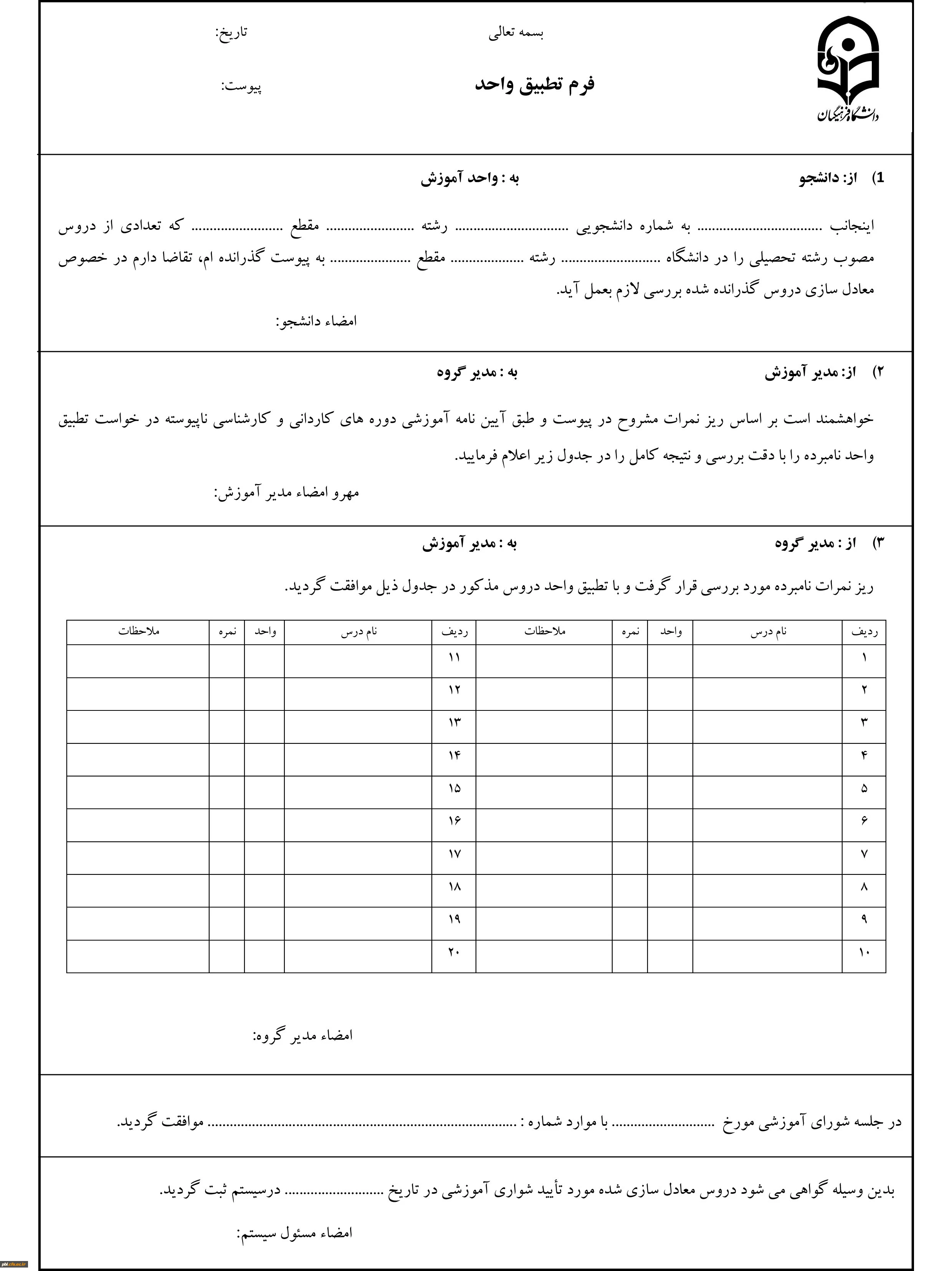 امتیاز دهید : کاربرگ تقاضای تطبیق واحدهای درسی و صدور دانشنامه (تقاضای تطبیق و تغییر گرایش) 2 یکشنبه 26 شهریور 1396 ساعت 12:21