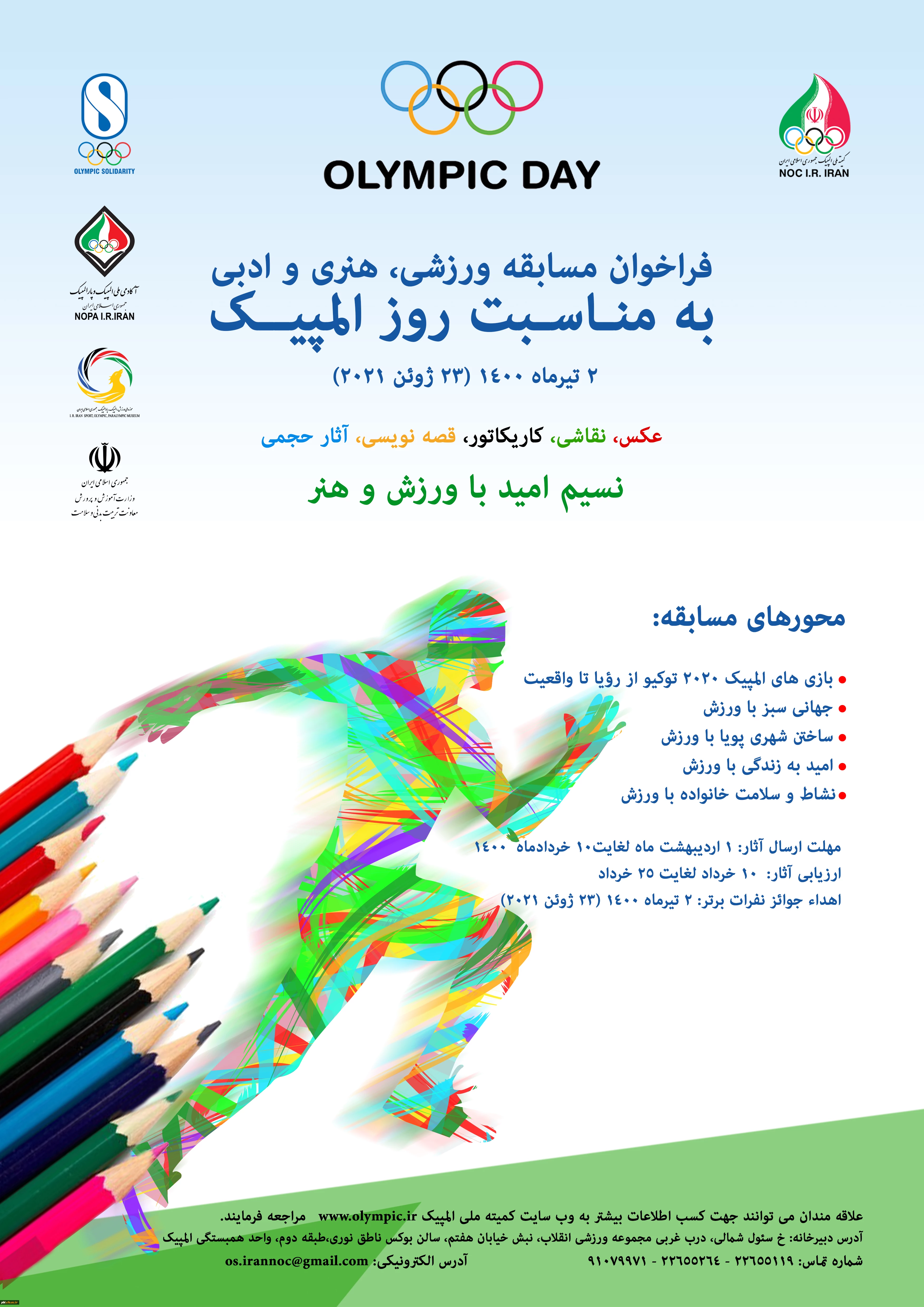 امتیاز دهید : فراخوان مسابقه ورزشی ،هنری و ادبی به مناسبت روز المپیک 2 یکشنبه 5 اردیبهشت 1400 ساعت 10:10