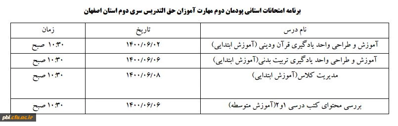 برنامه امتحانات مهارت آموزان ماده 28 3