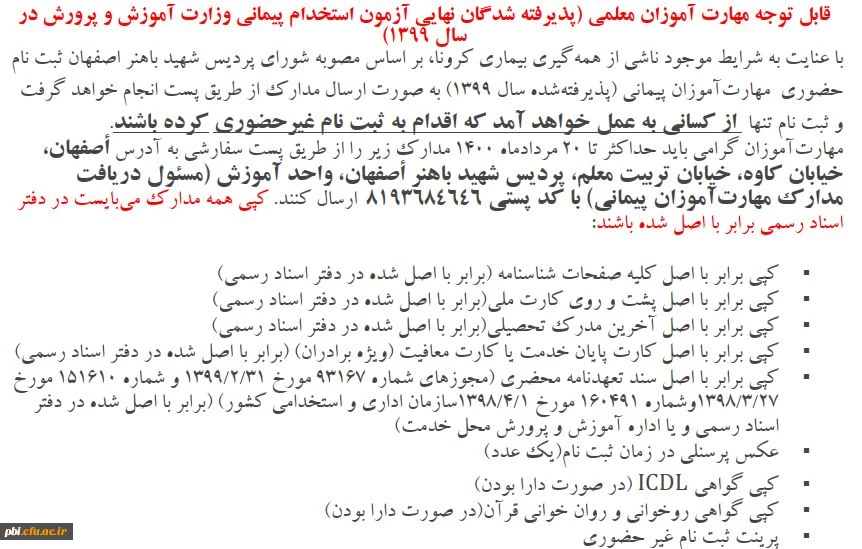 قابل توجه مهارت آموزان معلمی (پذیرفته شدگان نهایی آزمون استخدام پیمانی وزارت آموزش و پرورش در سال 1399) 2