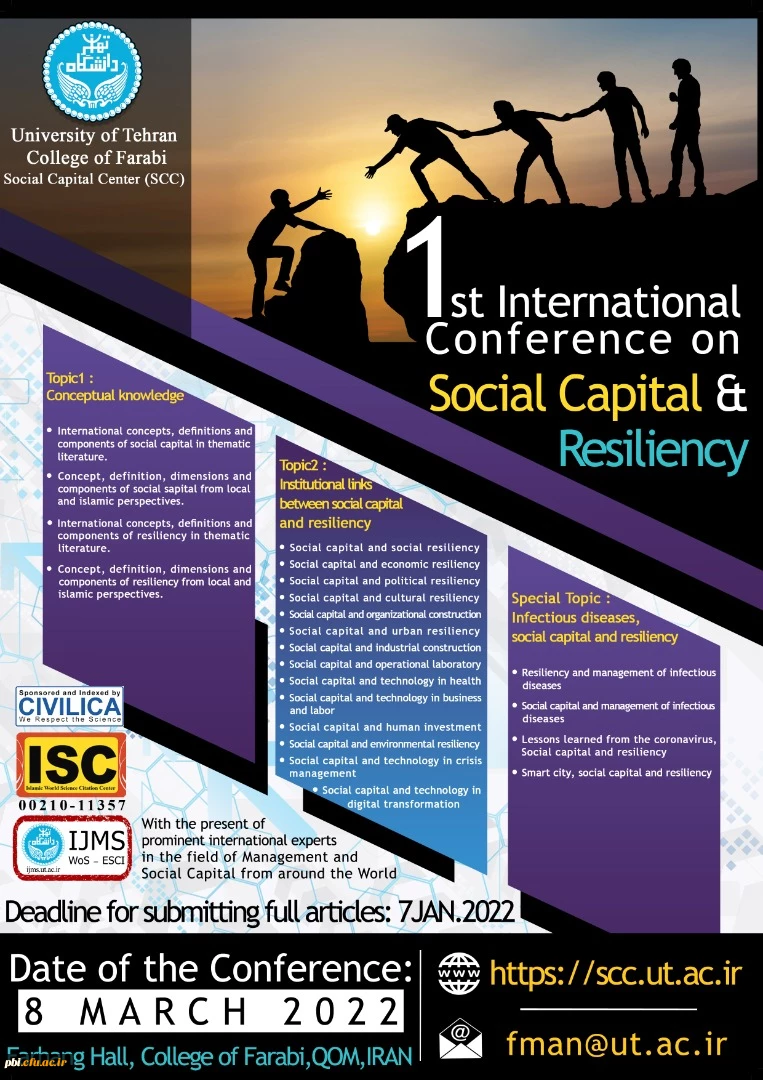 امتیاز دهید : مشارکت در سومین همایش ملی و اولین همایش بین المللی سرمایه اجتماعی و تاب آوری 4 یکشنبه 25 مهر 1400 ساعت 13:31