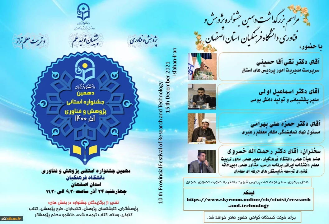 امتیاز دهید : دعوت به شرکت در مراسم گرامیداشت هفته پژوهش 1400 استان اصفهان 2 چهارشنبه 24 آذر 1400 ساعت 10:16