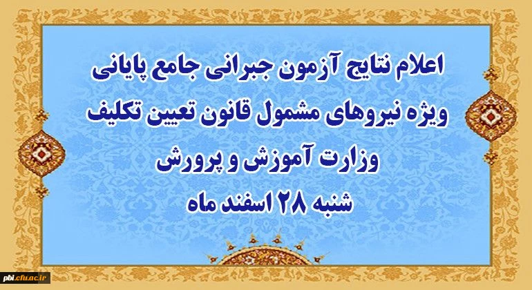 نتایج آزمون جبرانی جامع پایانی ویژه نیروهای مشمول قانون تعیین تکلیف وزارت آموزش و پرورش 2