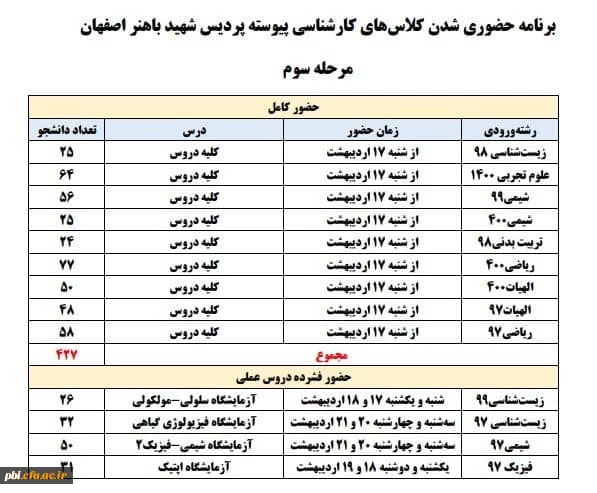 برنامه حضوری شدن کلاسهای کارشناسی پیوسته 2