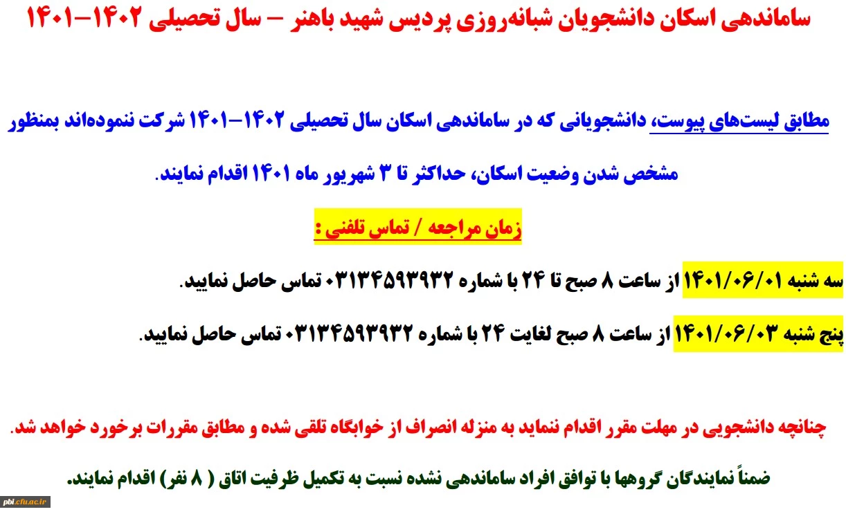 قابل توجه دانشجویانی که در ساماندهی اسکان شرکت ننموده اند 6