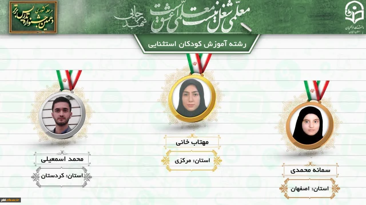 امتیاز دهید : درخشش دانشجو معلمان پردیس شهید باهنر اصفهان در دهمین جشنواره کشوری تدریس برتر منطقه ۶ 5 سهشنبه 27 تیر 1402 ساعت 13:48