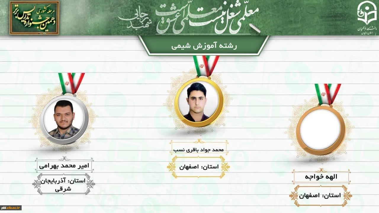 امتیاز دهید : درخشش دانشجو معلمان پردیس شهید باهنر اصفهان در دهمین جشنواره کشوری تدریس برتر منطقه ۶ 9 سهشنبه 27 تیر 1402 ساعت 13:48