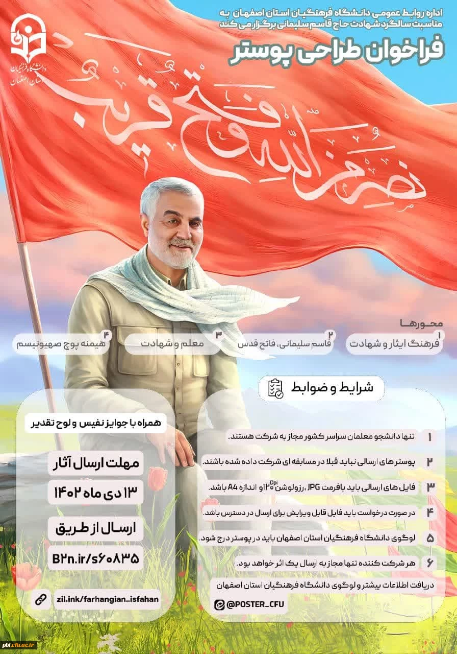 اداره روابط عمومی دانشگاه فرهنگیان استان اصفهان به مناسبت سالگرد شهادت حاج قاسم سلیمانی برگزار می کند: 2