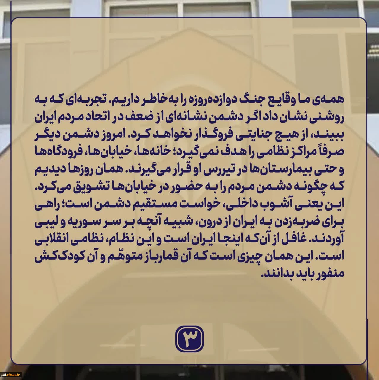 امتیاز دهید : بیانیه بیش از ۴۰۰ نفر از دانشجومعلمان دانشگاه فرهنگیان اصفهان پیرامون اتفاقات اخیر 4 چهارشنبه 17 دی 1404 ساعت 9:19
