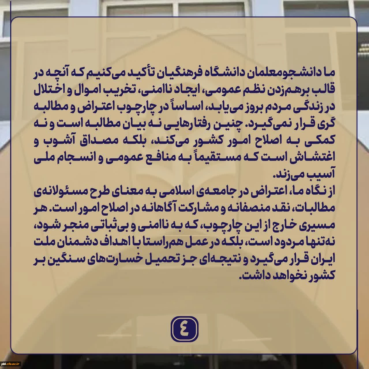 امتیاز دهید : بیانیه بیش از ۴۰۰ نفر از دانشجومعلمان دانشگاه فرهنگیان اصفهان پیرامون اتفاقات اخیر 5 چهارشنبه 17 دی 1404 ساعت 9:19